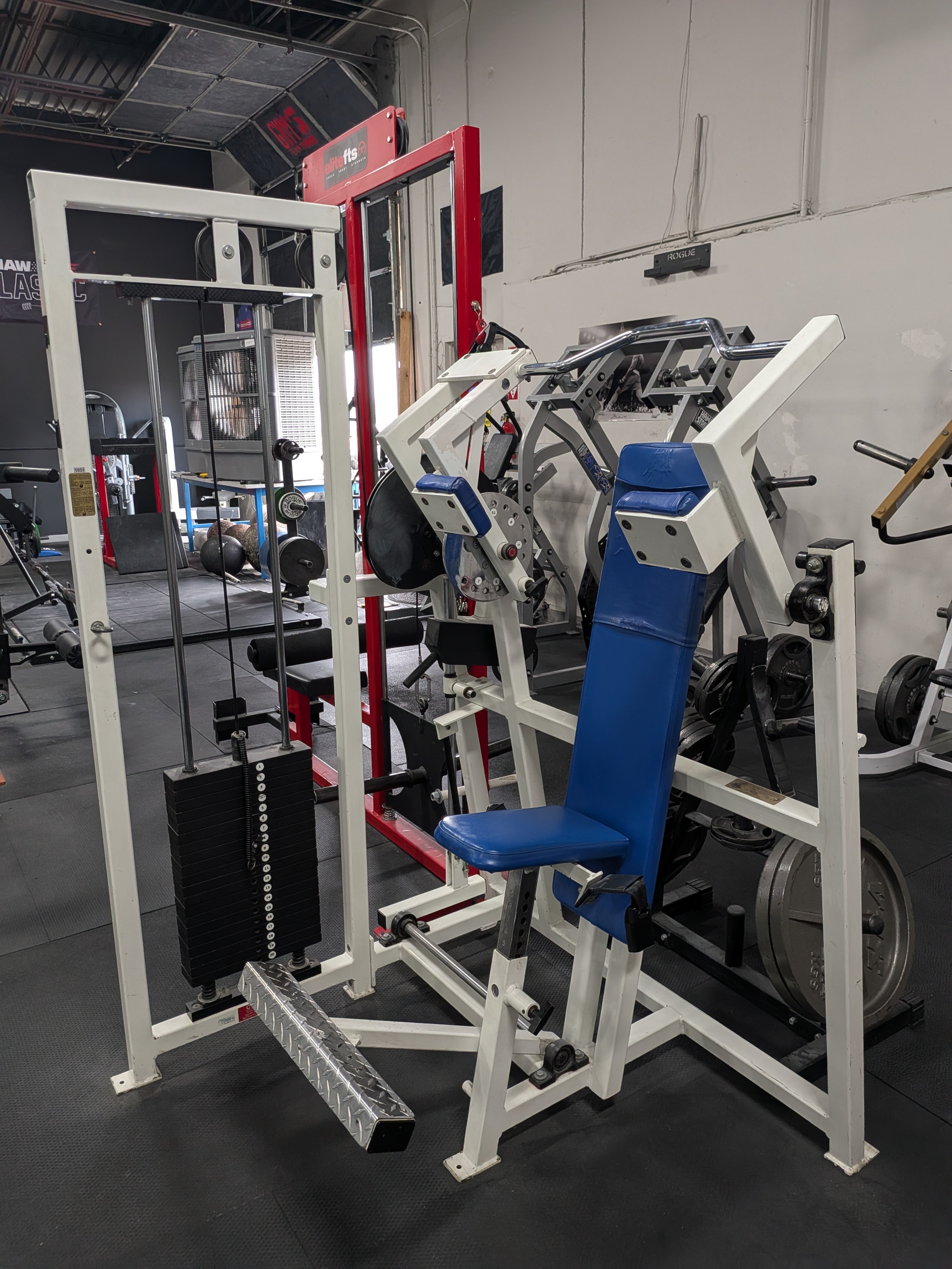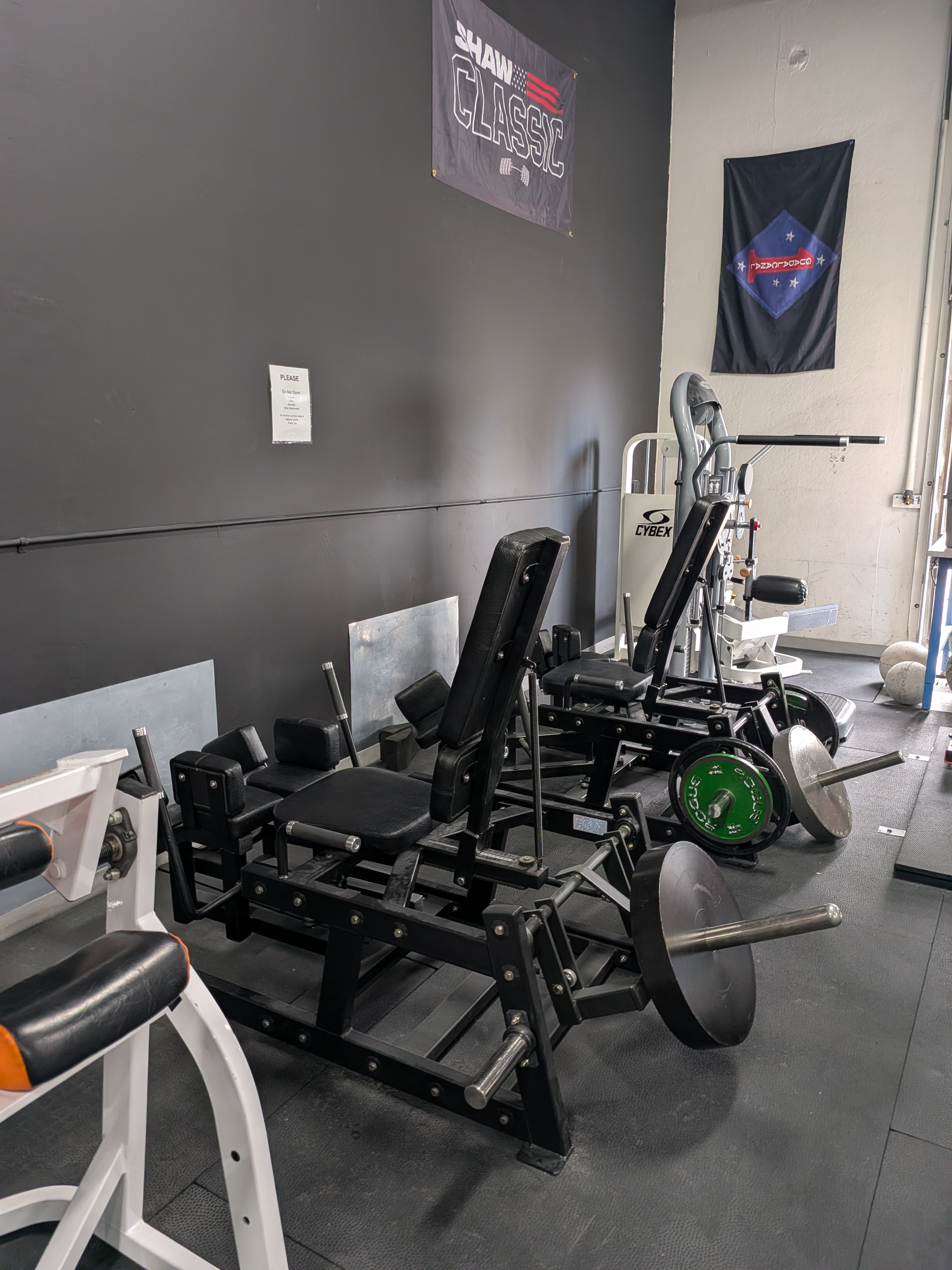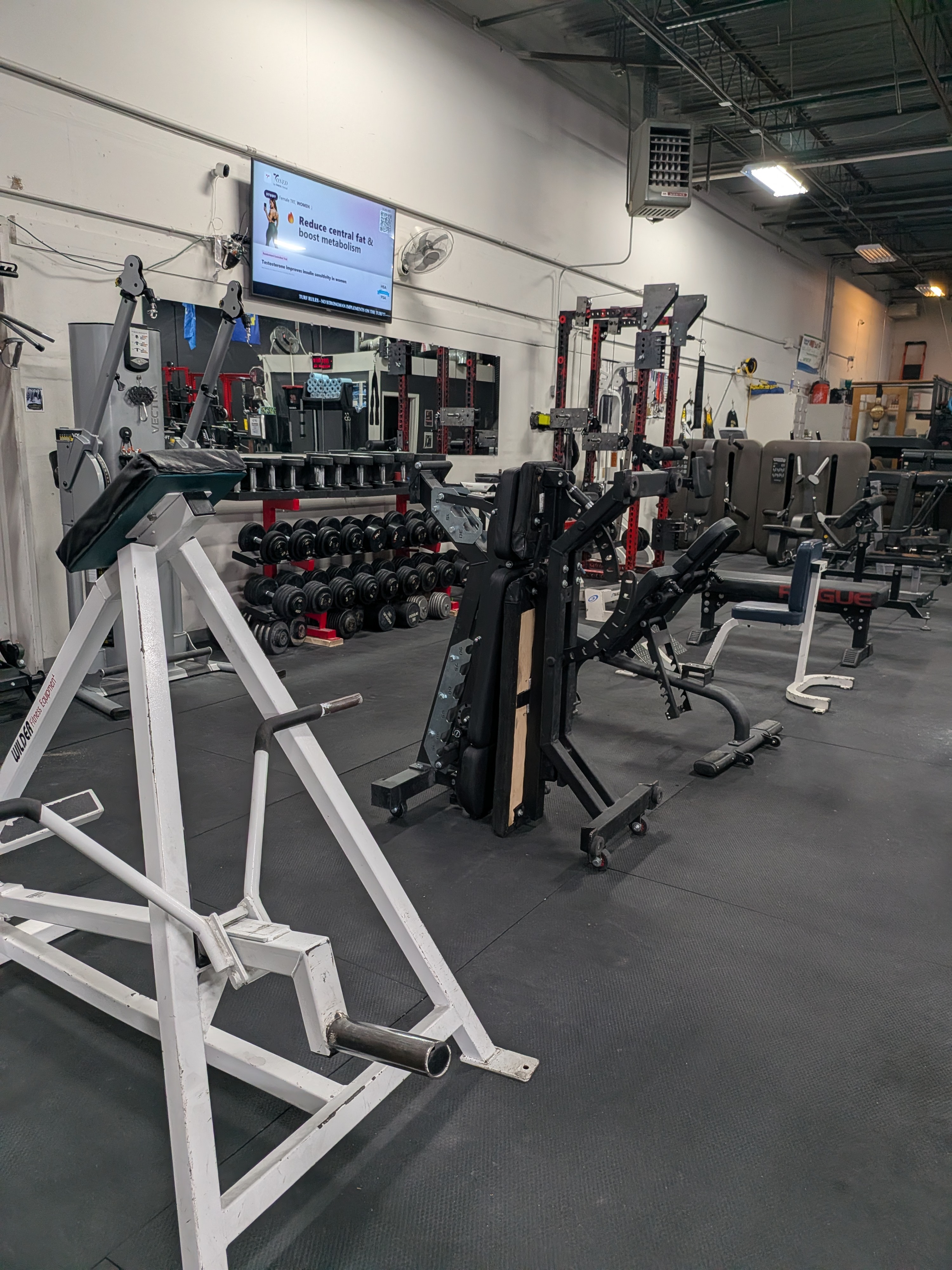 Dumbbells to 200 plus. Competition benches and racks. Specialty bars. High-density cable stations. Extensive plate-loaded and selectorized machines. Posing-friendly lighting and mirrors.