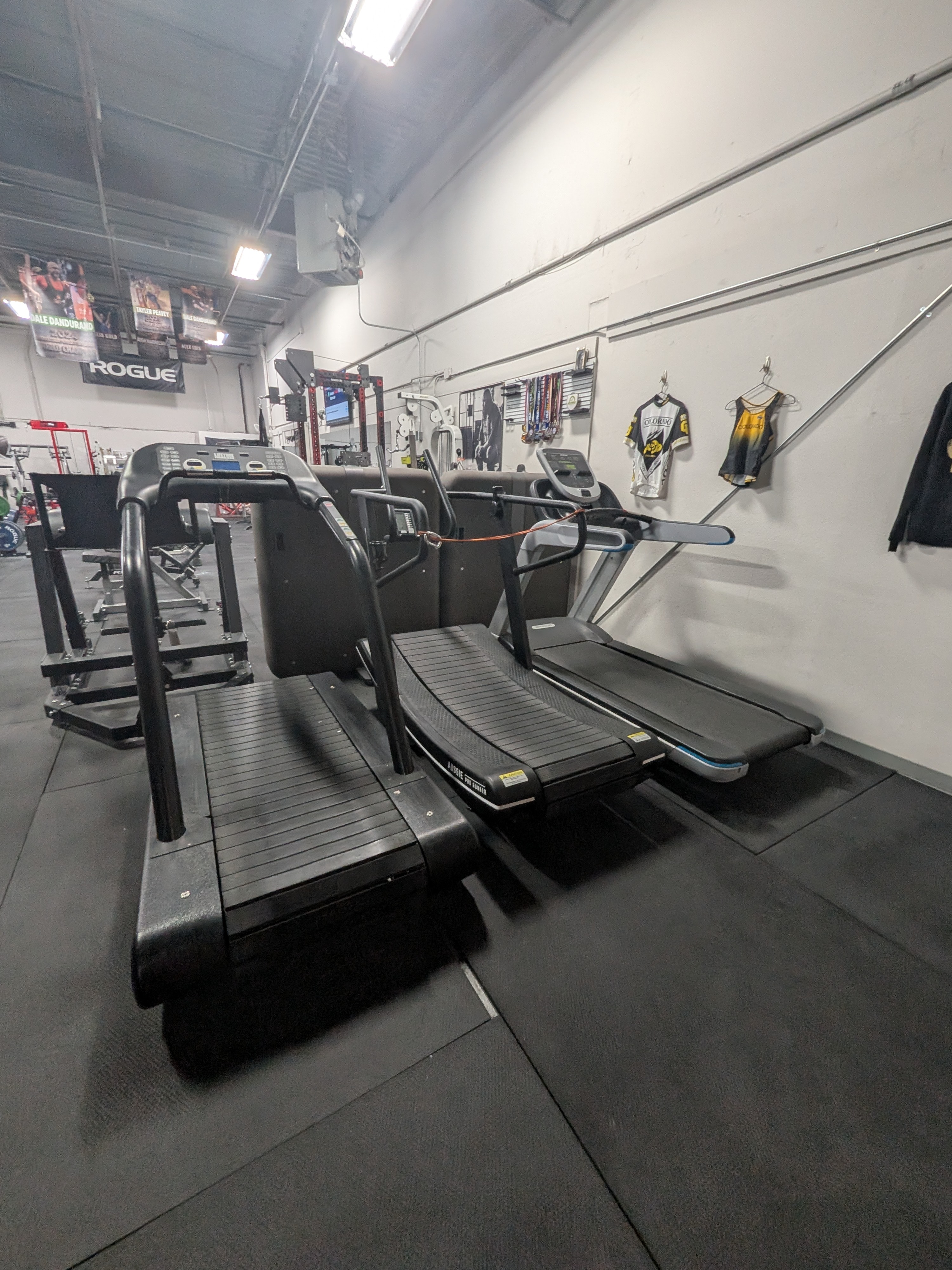 Competition racks and platforms. Bands and chains. Manual treadmills. Run Rocket acceleration trainer. Plyometric systems. Vertical jump testing. Expansive turf and sled lanes.